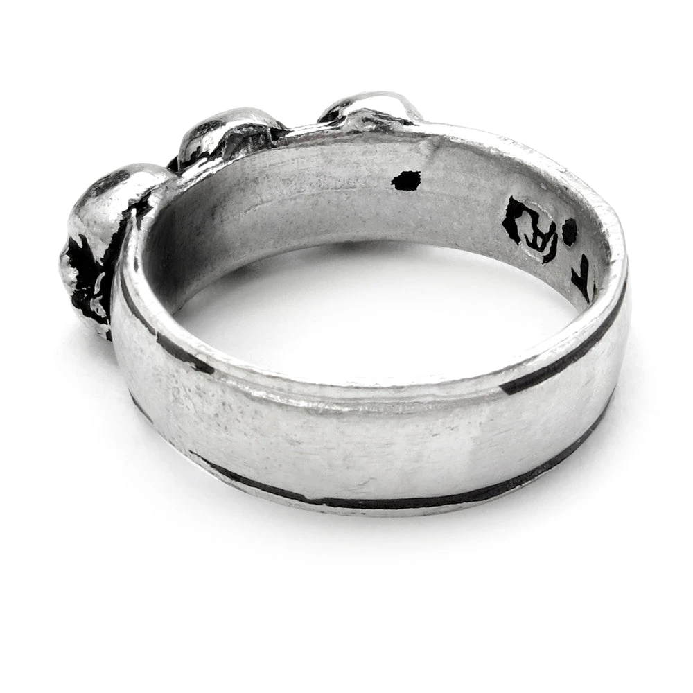 Three deaths for the auspicious. Each caput mortem, or death’s head, representing one mortal life.