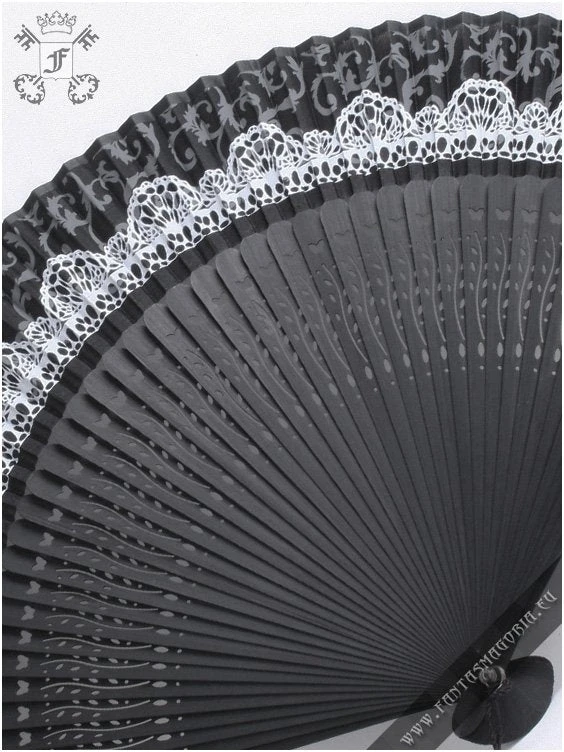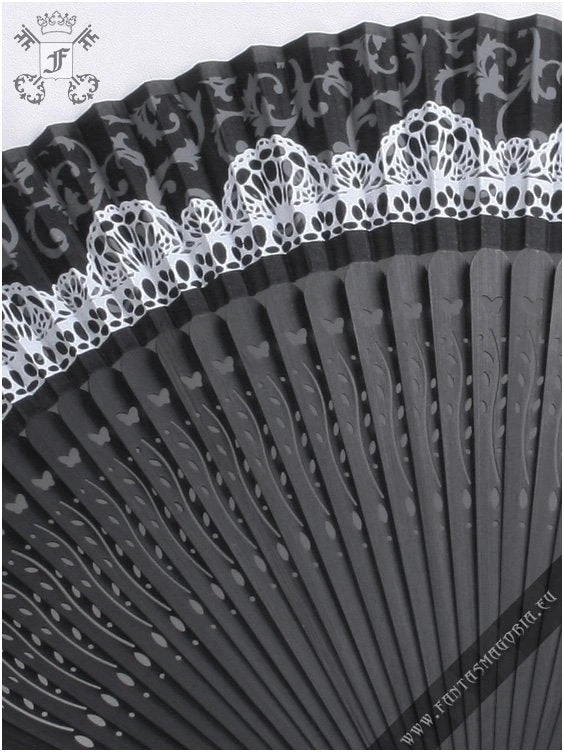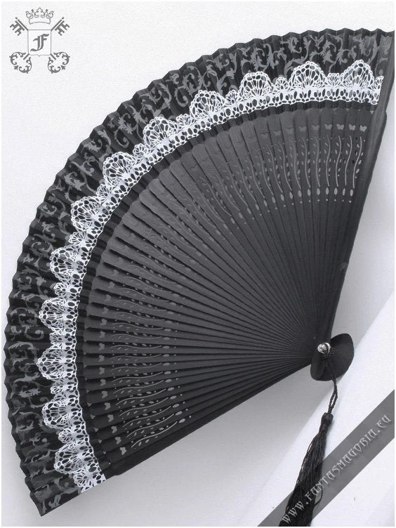 Gothic Lolita folding fan. Beautiful black and white folding fan with lace-y accents.