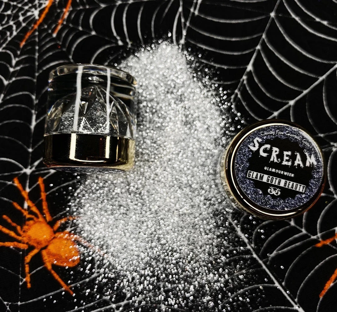 This Glitter Mix Of Silvers With A Hint Of Black Was Inspired By The Mask The Killer Wore In “Scream” But With A More Elegant Touch.