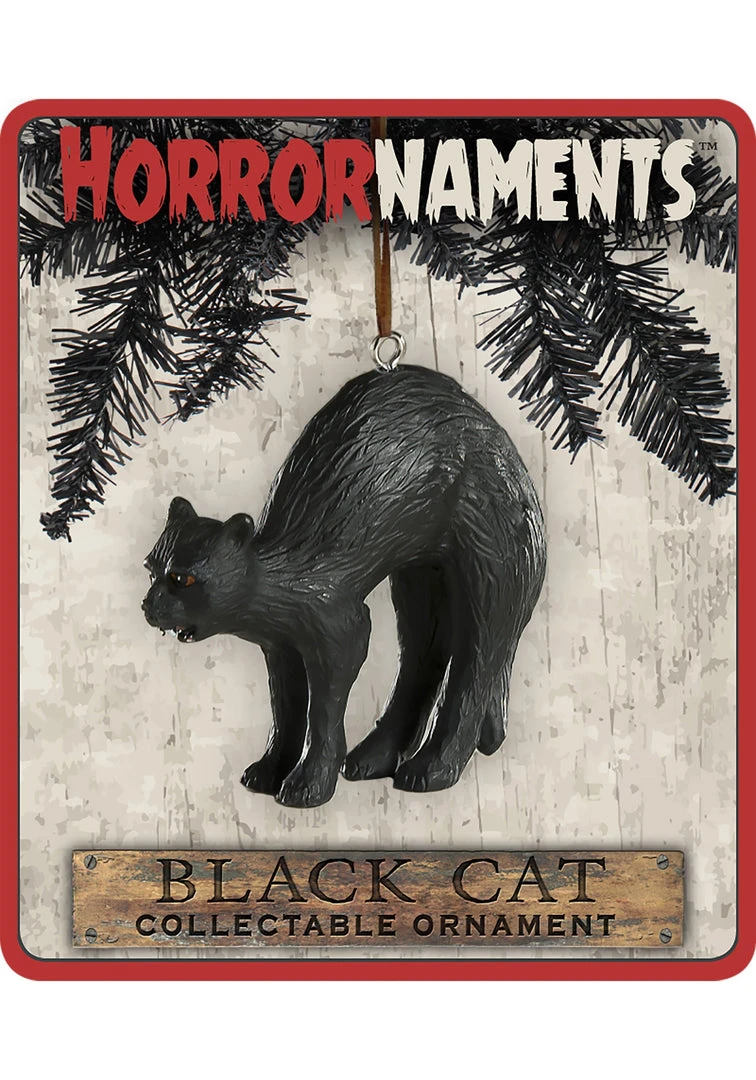 The Horrornaments sculpted black cat Halloween-themed tree ornament. Designed by the owner of the The Haunt, West Michigan’s premiere haunted attraction. Look out! Too late, this black cat has already crossed your path, bringing misfortune to all that come across him. The perfect accompaniment to a witch’s tree, this fierce feline