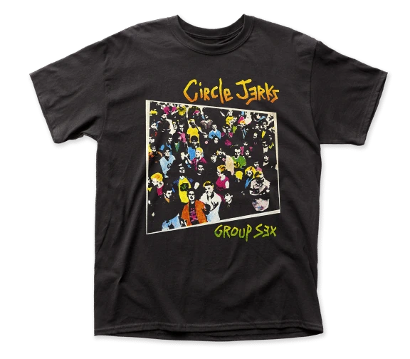 This tee features a full-color image of Group Sex, the debut studio album by the hardcore punk legends, the Circle Jerks.