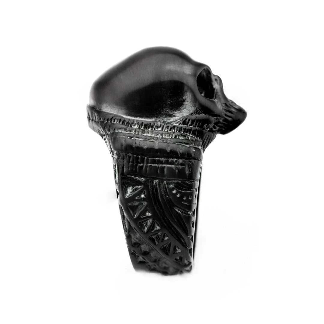 Stainless Steel Black Plated Matte Finish Skull Ring