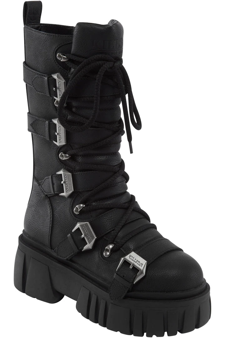 All you have to do is be yerself; these ‘Beelzebub’ boots come in a faux-leather body – with statement straps, lace-up front and chunky soles. Ready to rock!
