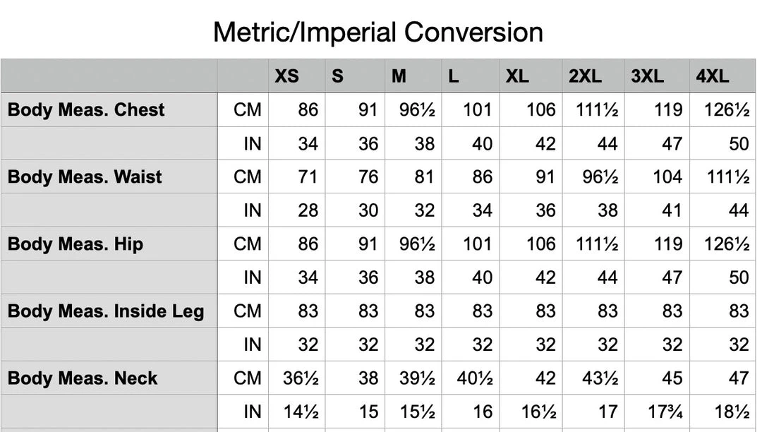 | Size | X-Small, Small, Medium, Large, X-Large, 2X-Large, 3X-Large |