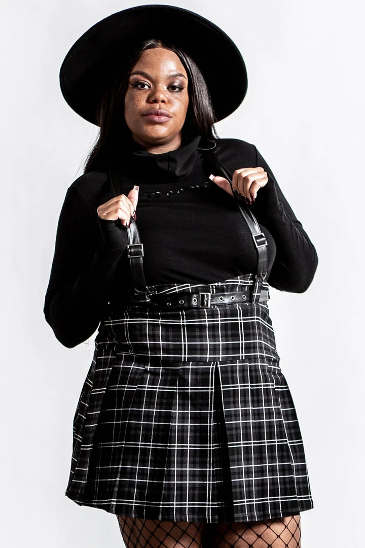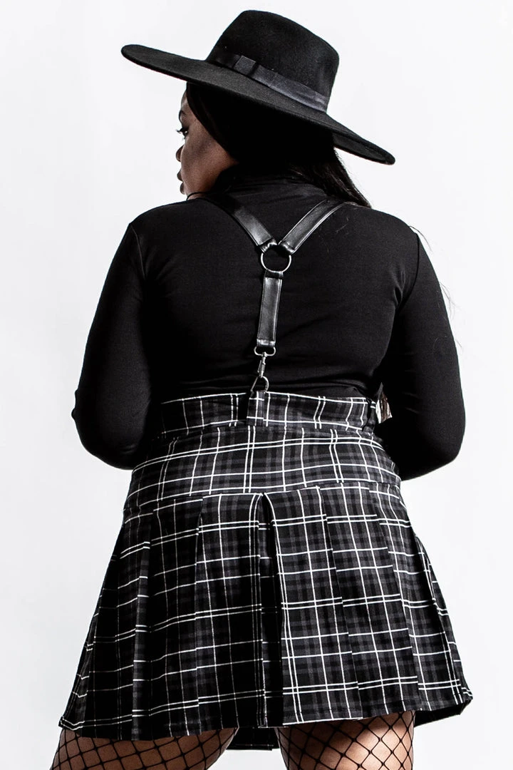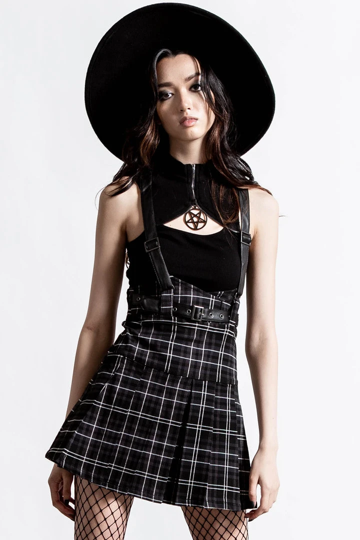 Killstar Shadows Suspender Mini Skirt [ASH TARTAN]