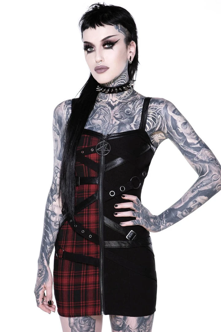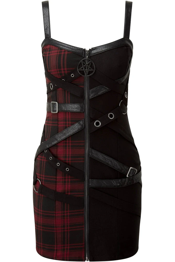 Killstar Women’s Stuff Bury Me Bondage Dress [TARTAN]