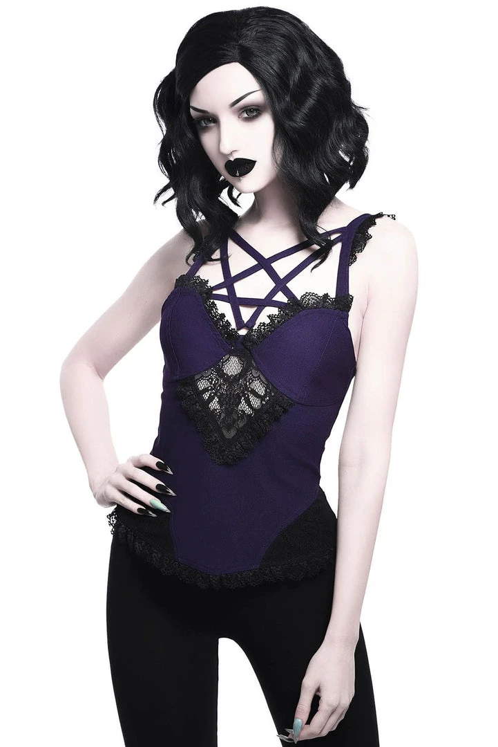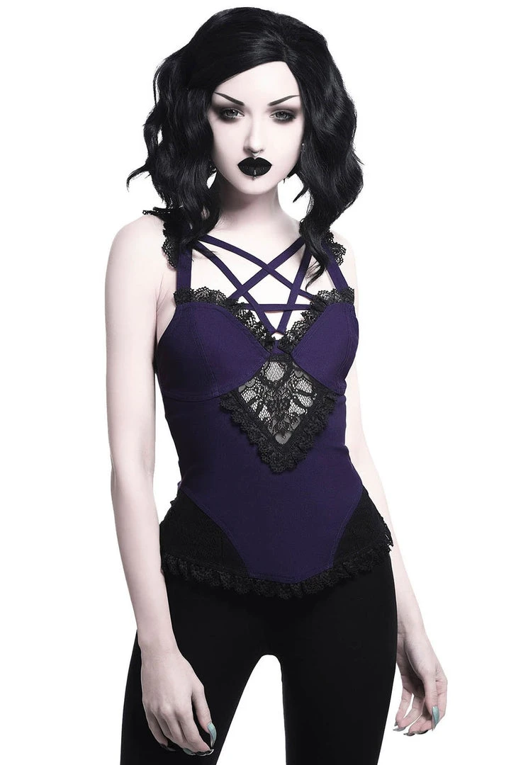 Killstar Women’s Stuff Lydia Harness Top [PLUM]