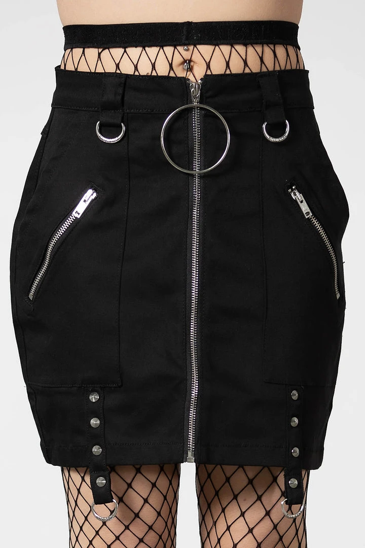 Be bold in our ‘Ximena’ Mini skirt; Crafted with soft cotton with a full length zip closure and features a large metal O-ring. With statement zip and stud details this skirt is the perfect piece to take you from dusk till dawn.