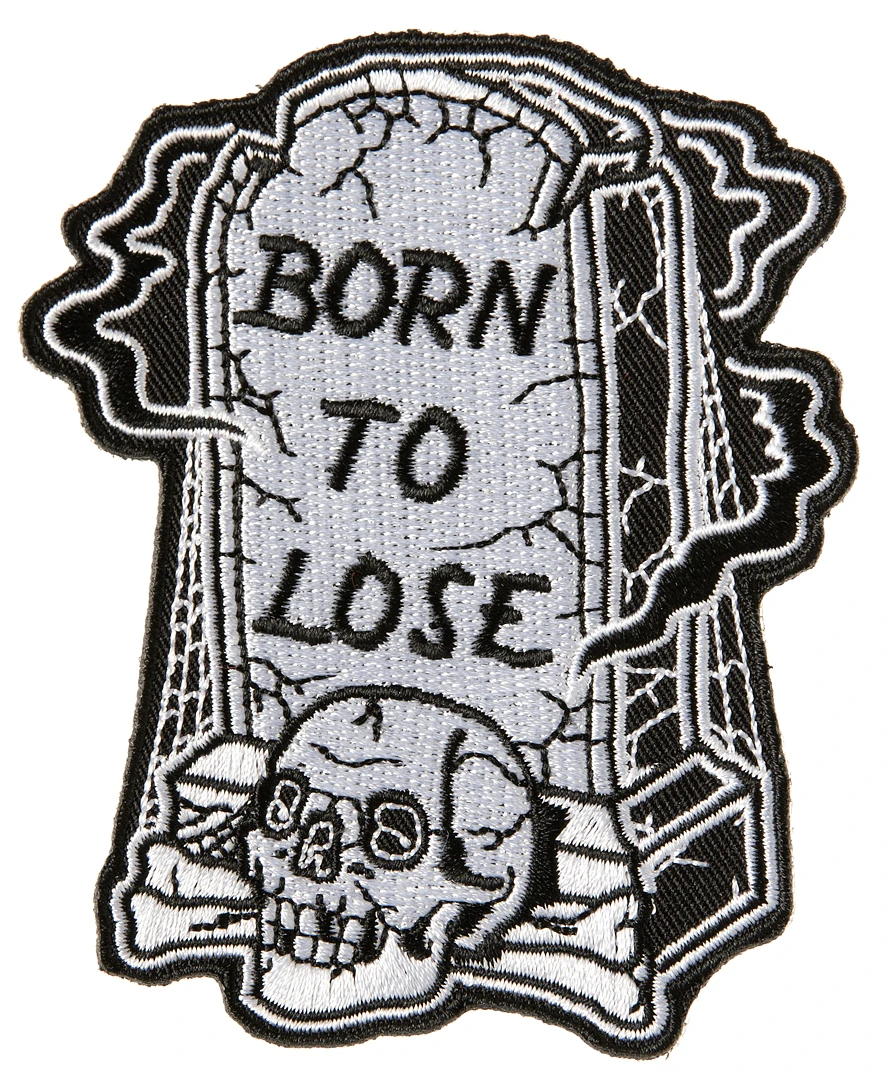 Born to Lose? We’ve got an epitaph that’s totally fitting. Since you’re not six feet under just yet, your final words can travel with you on your favorite jacket, vest or bag. Iron-on backing makes your future Tombstone easy to apply.