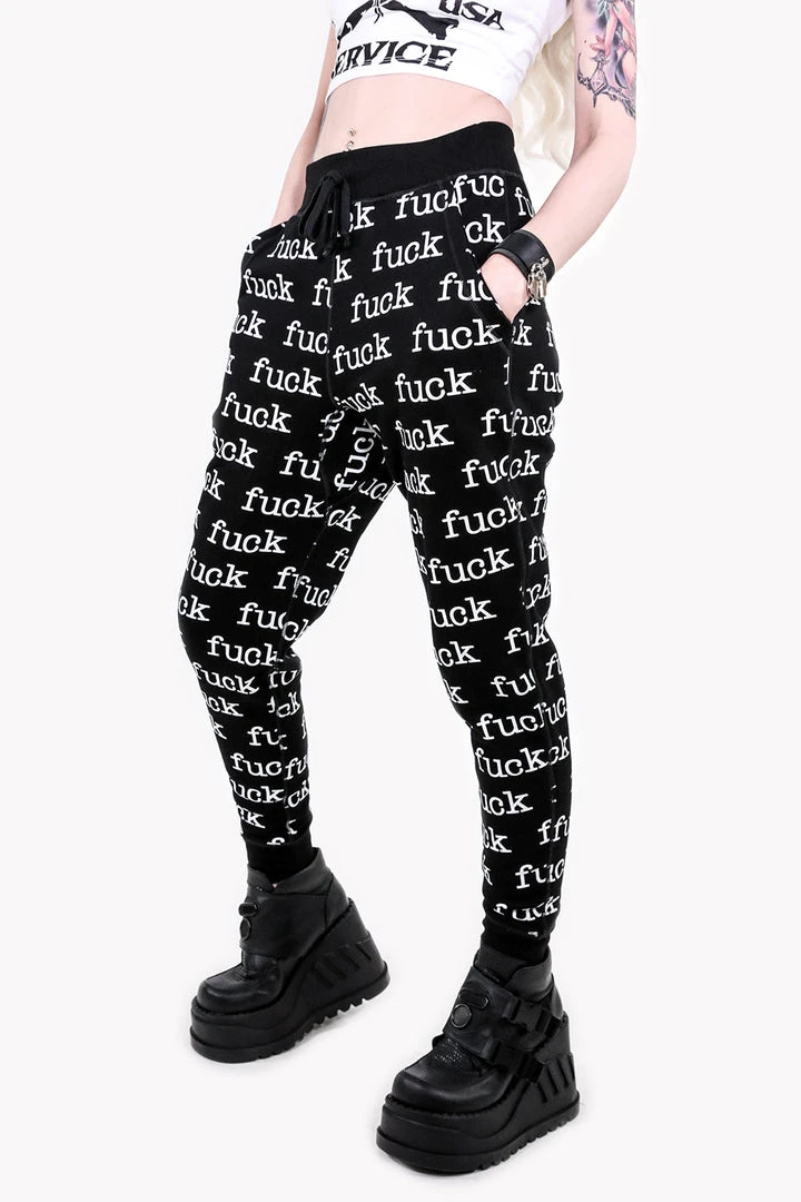 Lip Service classic FUCK print sweatpants. The ultimate idgaf!!! Make ’em into shorts if you want because yur a gym rat!