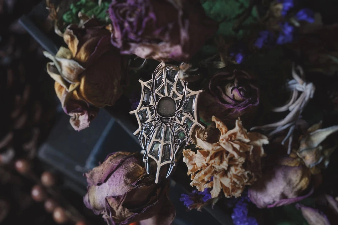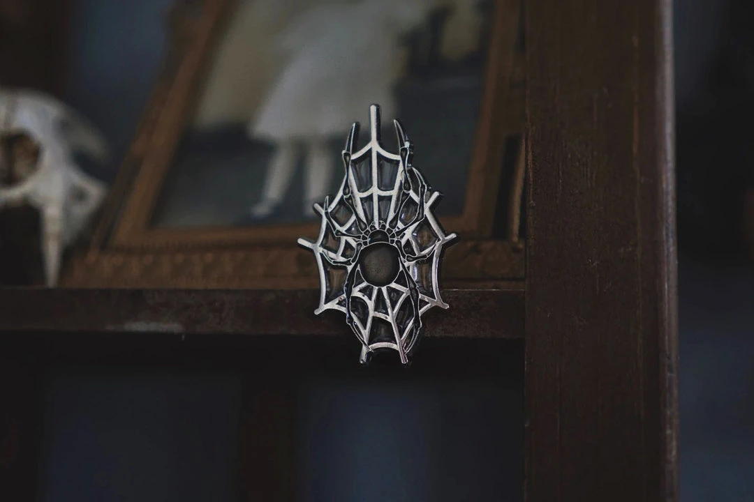 Material: Silver, with cutouts for the spiderwebs