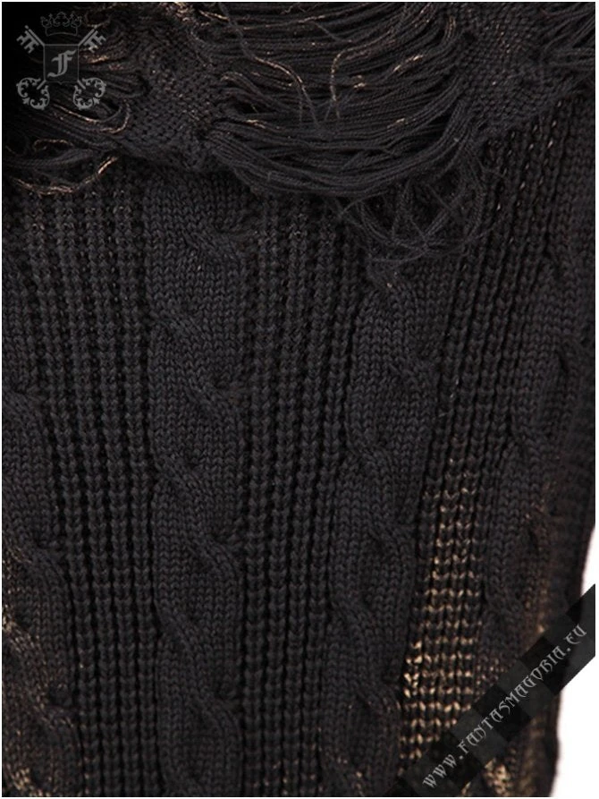 Steampunk Gothic Bohemian Decadence style distressed knitted pullover sweater dress for women.