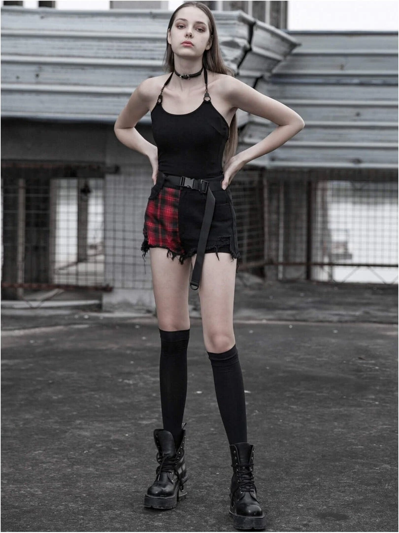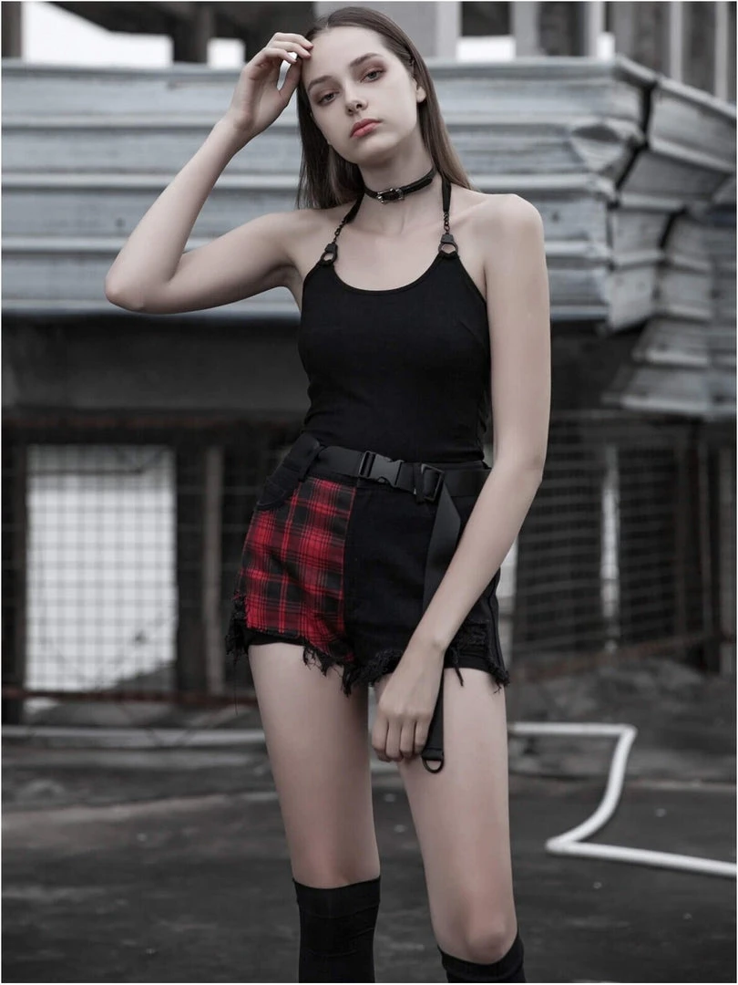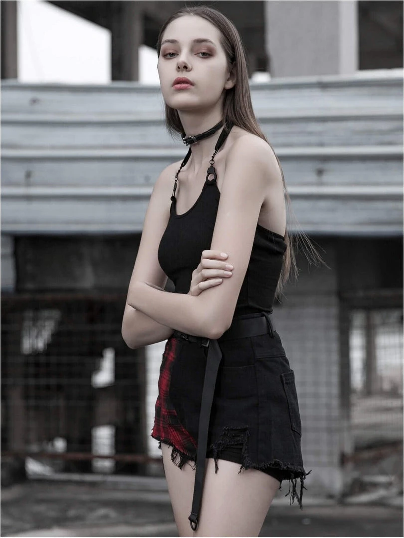 Sin City Top by Punk Rave with handcuff accents and ties around the neck.