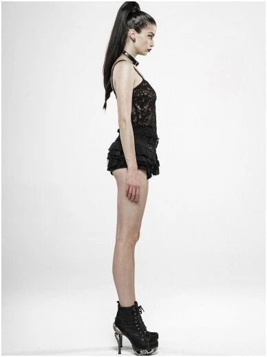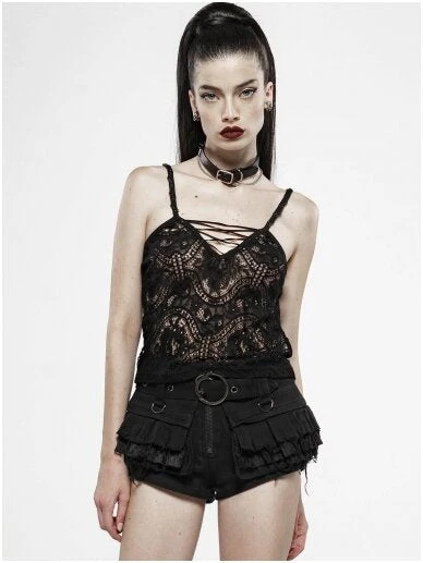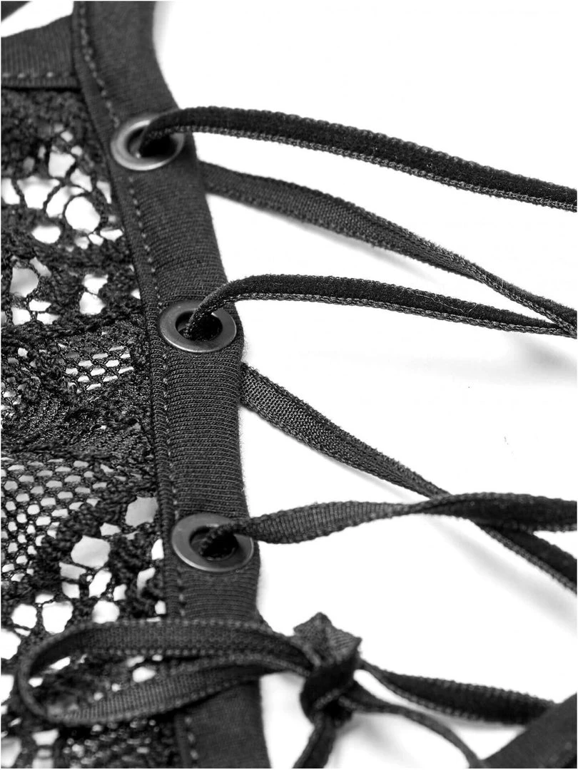 Black Opium top by Punk Rave. Short black lace top with straps and lacing on the front.