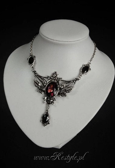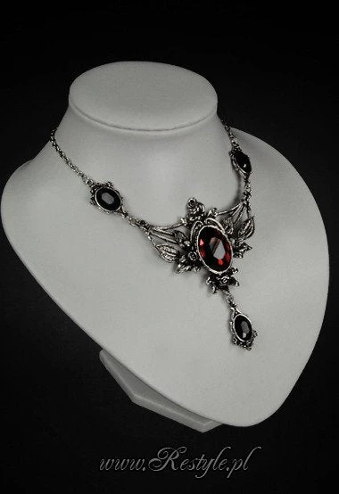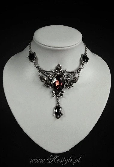 Wild Roses Evening Necklace with Roses and Burgundy Stone
