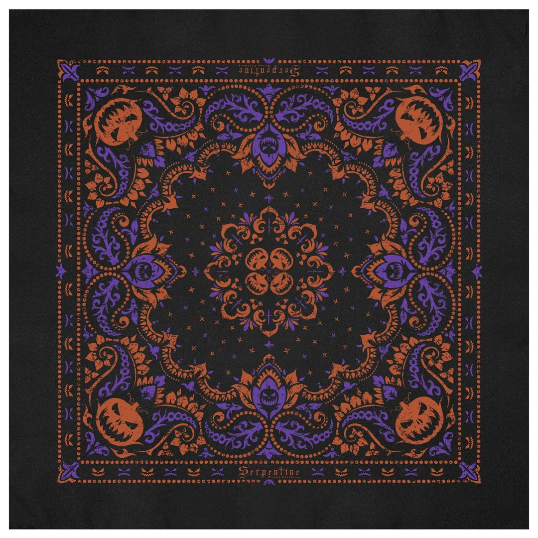 Samhain Bandana is Orange and Purple on a Black bandana. Designed diagonally so once it’s folded and tied it will display at it’s very best.