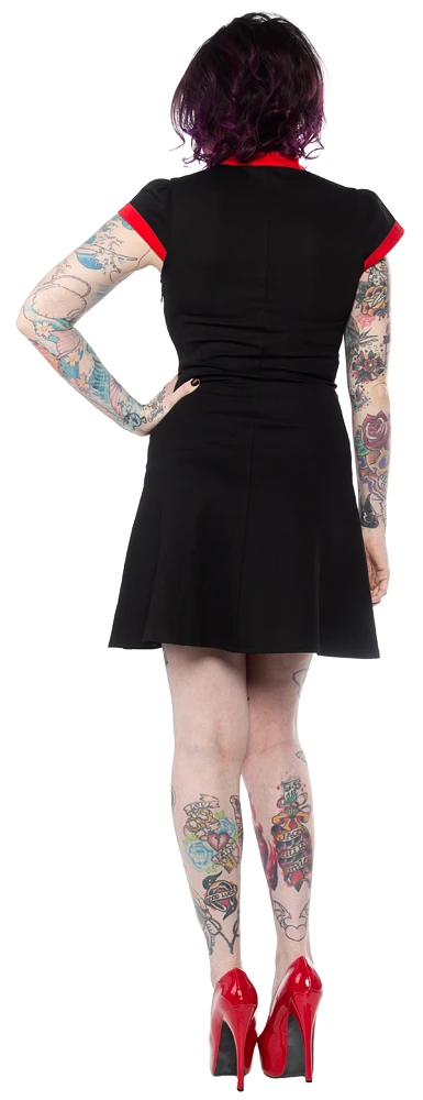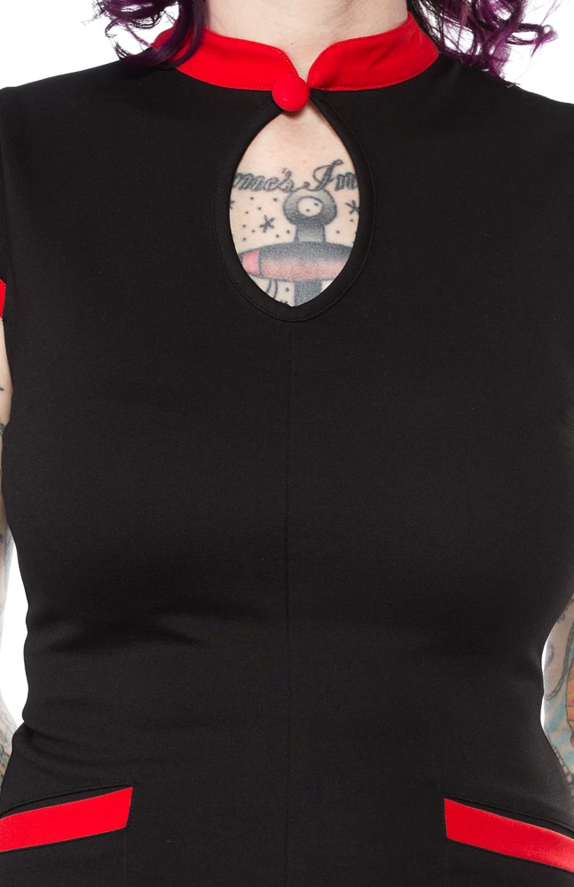 Secret Agent…woman! The Secret Agent Dress will have you feeling like an international woman of mystery! This heavyweight, classic knit dress features bright red contrast details at the collar, sleeves and pockets. There is a keyhole/button at the front neck, and an invisible zipper at the side seam.