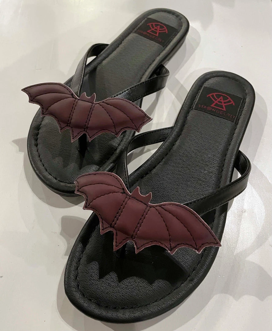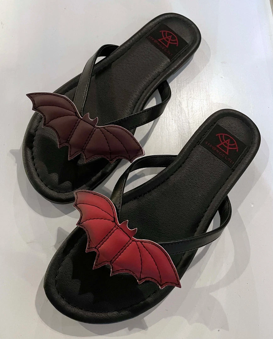 The Strange Cvlt Betty sandal with a dark red color-changing bat! The bat is dark red in cold and changes to a brighter red the warmer it gets.