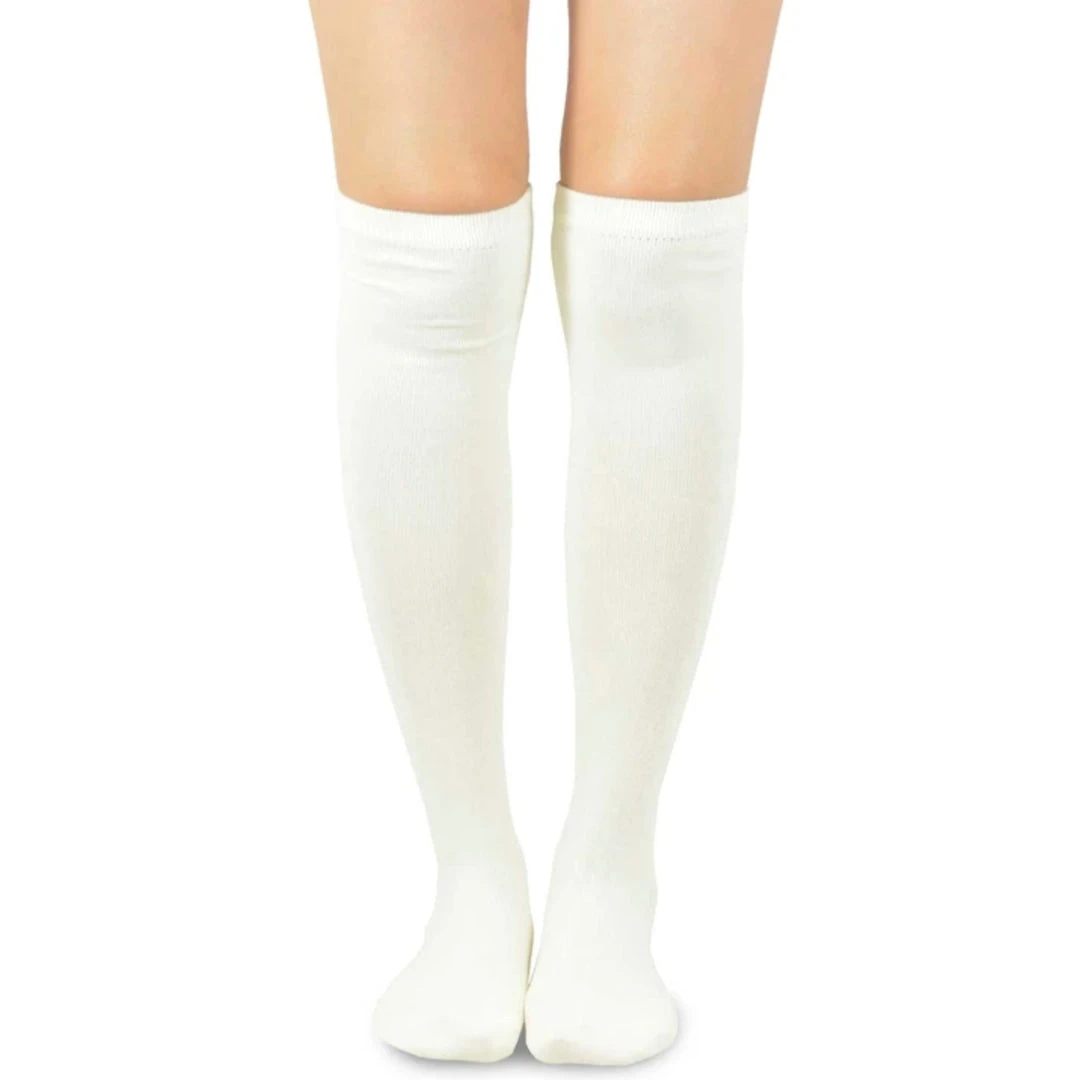 Women’s Casual Cotton Knee High Solid Plain 2-Pack – black and white